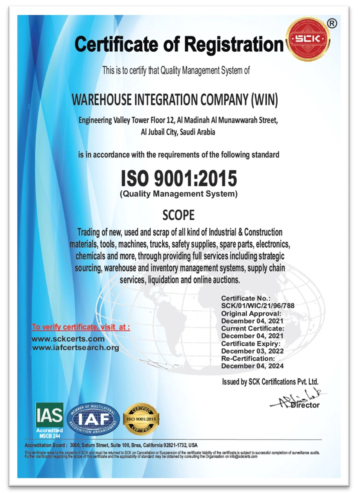 The WIN Company's quality management system (QMS) and processes are designed to meet the expectations of our customers and other stakeholders.